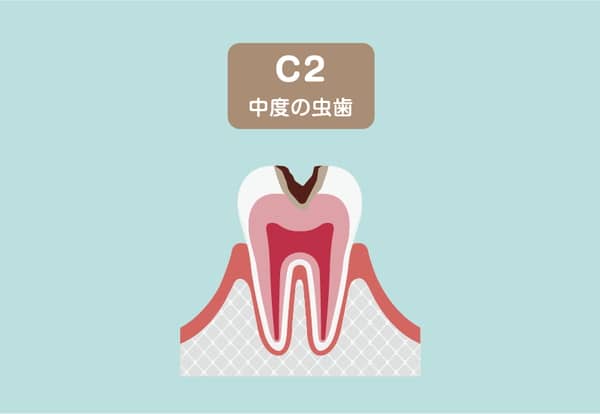 虫歯が進行し、象牙質にまで進んだ状態を指します。